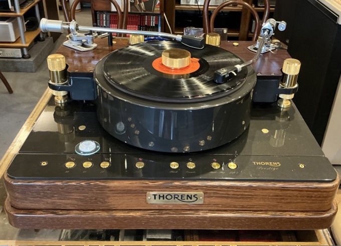 ■THORENS のアナログターンテーブル「Prestige」が入荷しました。トーンアームにはSME3012R (USED) とオルトフォン RMG309i (新品)を取り付けています。